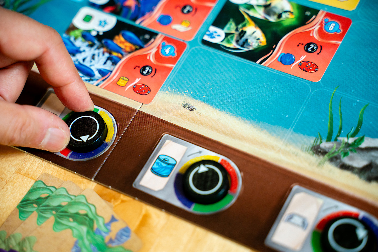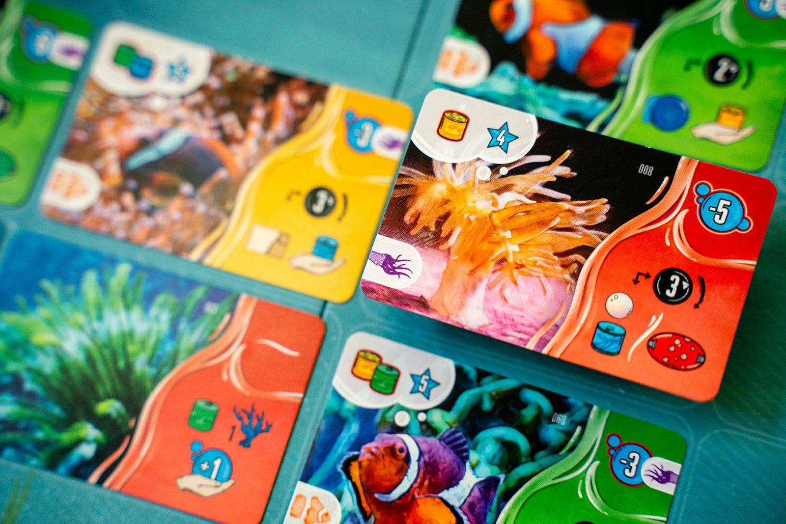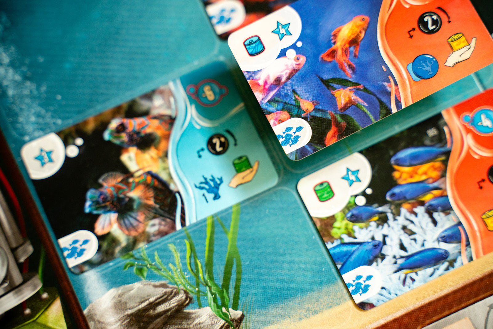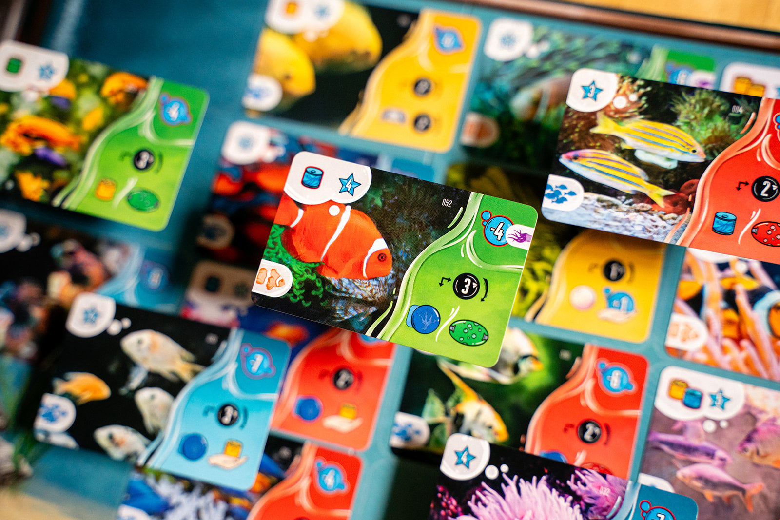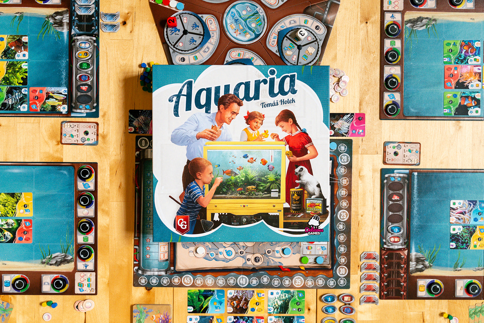 In Aquaria, players compete to build the most impressive aquarium, demonstrating their expertise in maintaining a thriving marine environment. Have the most points at the end of the game by buying new fish, feeding them, and keeping your aquarium in good condition. Track player progress through an encyclopedia, which will reward players for their advancement in aquarist studies. Designed for one to four players, a typical game lasts approximately 45 minutes per player.