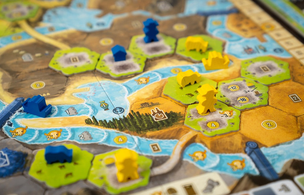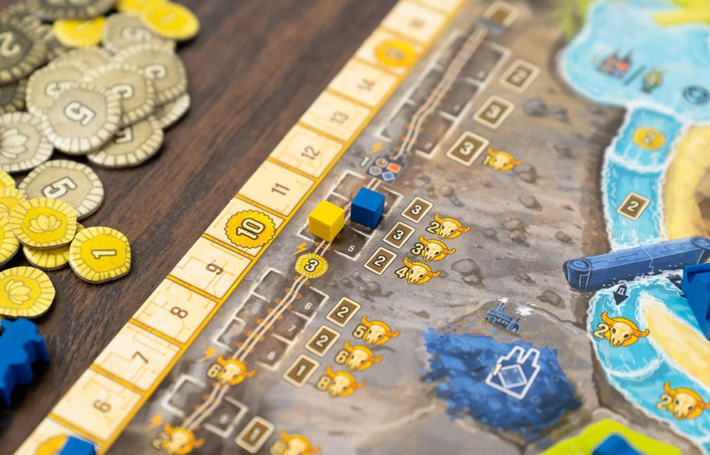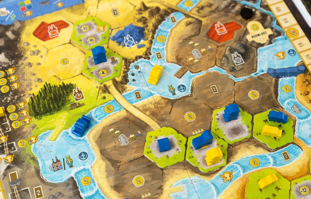Boonlake is an expert game by Alexander Pfister where you are finding yourself improving your life, and your group’s life in this new territory…but how you accomplish this is completely up to you! Introducing a novel action mechanism, each game progresses differently. Will you focus on expansion? Or maybe you contribute to creating an infrastructure? Or possibly pursue your own agenda? Carefully consider what you choose, as each action benefits everybody else…