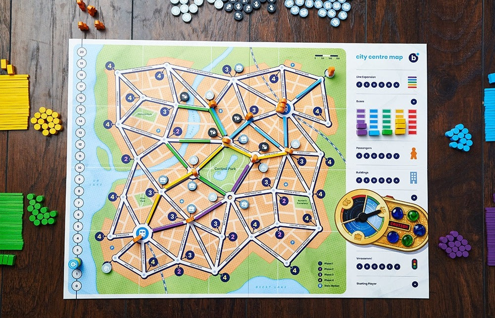 Bus: Complete Edition features the same classic gameplay in Bus, now with all wooden game pieces! All of the building locations (home, office, and pub) are wooden discs. The wooden Start Player Bus is also included.