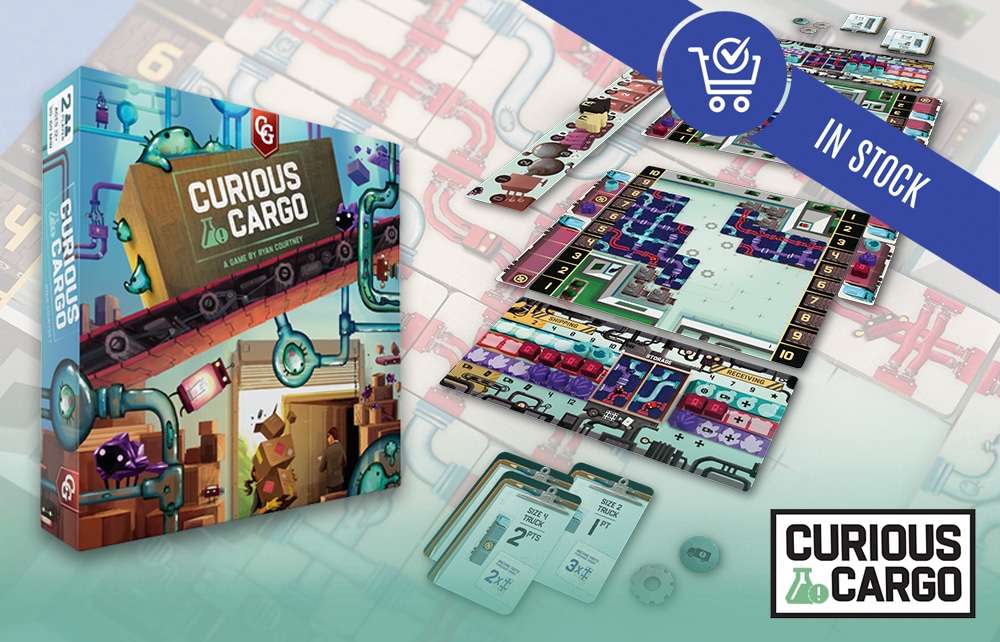 The puzzling nature of Ryan Courtney’s Pipeline comes alive in Curious Cargo! With 6 unique player boards for each player and 2 game modes, a skillful challenge awaits even the sharpest competitor.