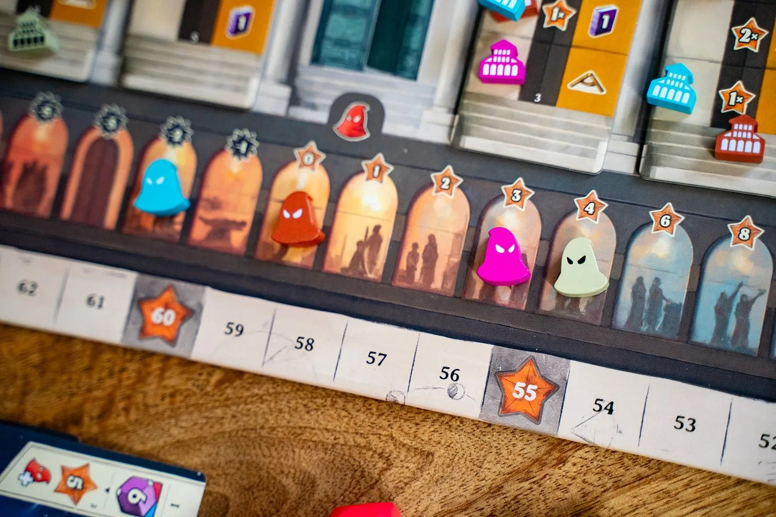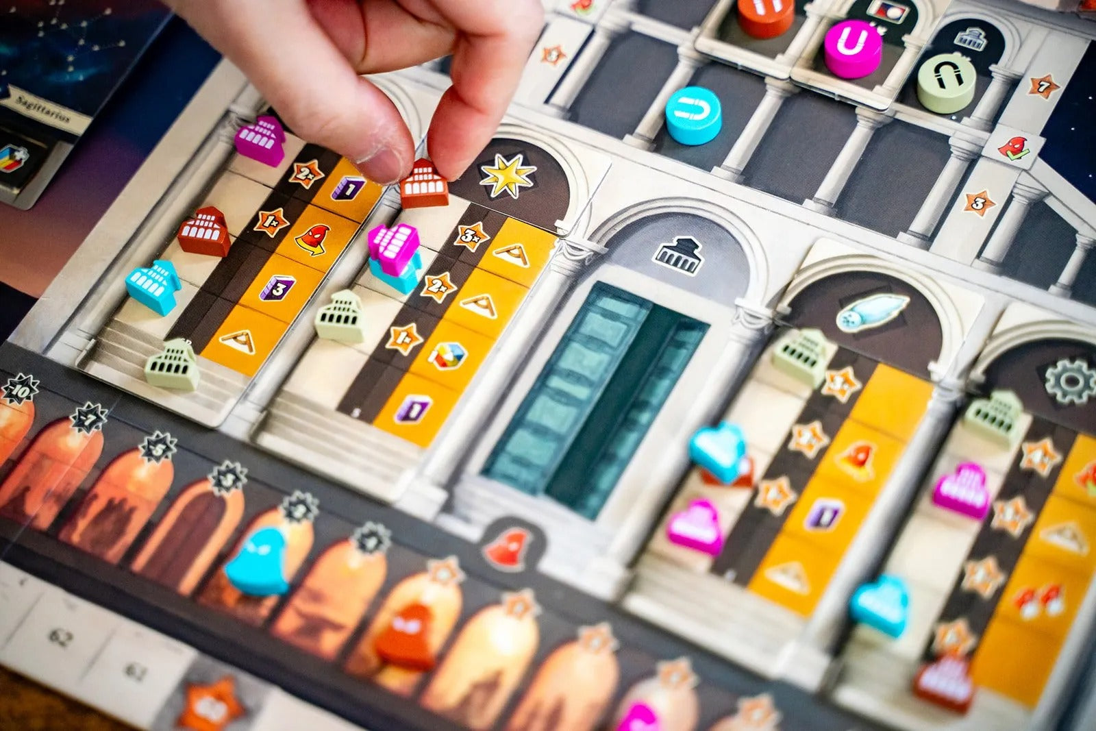 In Galileo Galilei, your telescope becomes your guide to choose from five available actions. As you progress, these actions can be upgraded, unlocking new realms of strategic possibilities. Discover different planets and star systems. Collect lenses of the three main colors to make groundbreaking discoveries. Stay vigilant, as the unwelcome arrival of Inquisitors could threaten your hard-earned reputation. Best find a way to profit from their visit instead…
