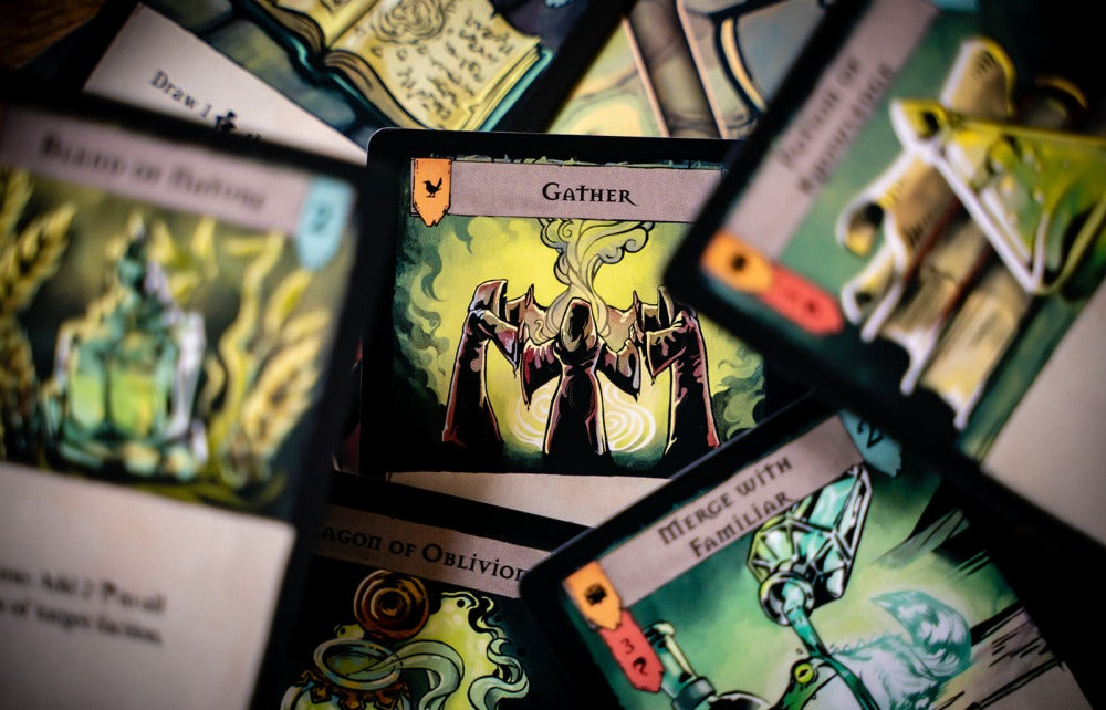 Pagan: Fate of Roanoke is an expandable and asymmetrical card game with one player taking on the role of the Witch and the other the Hunter. The Witch attempts to carry out a ritual before being exposed and eliminated by the Hunter.
