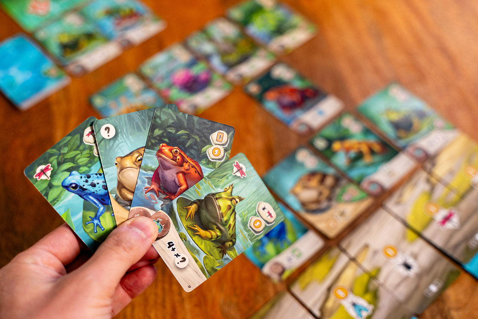 Pondscape is a card game where 1 to 4 players engage in the serene activity of building their own vibrant aquatic ecosystems. The core objective is to strategically populate their pond with diverse frog species and their preferred environments. Success hinges on forming specific groups of frogs that meet predefined conditions, which then yield valuable scoring points.