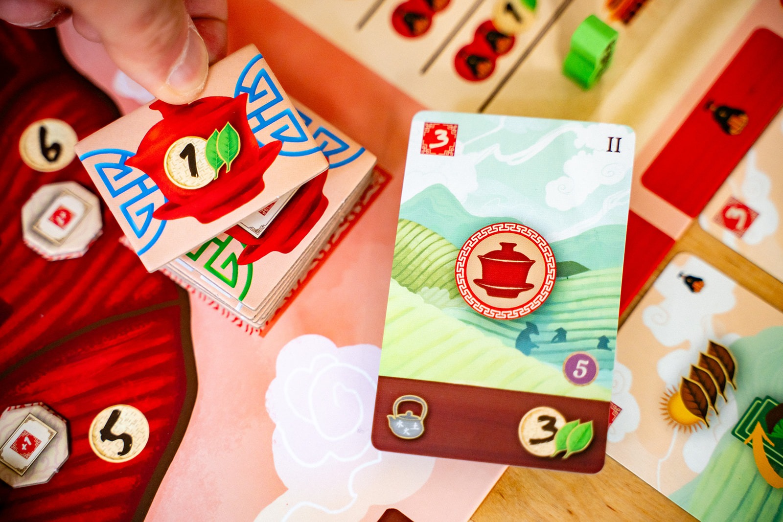 Cultivate and expand your empire by establishing new tea gardens in this deck-building and hand management game.