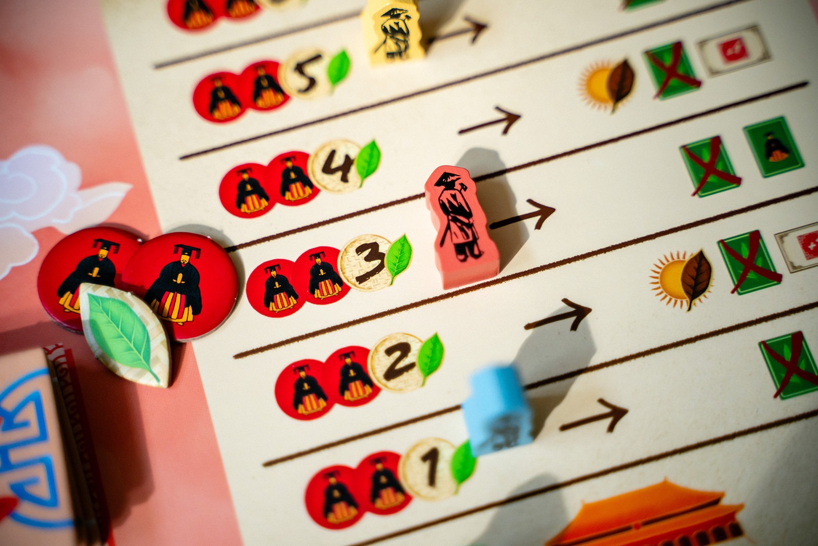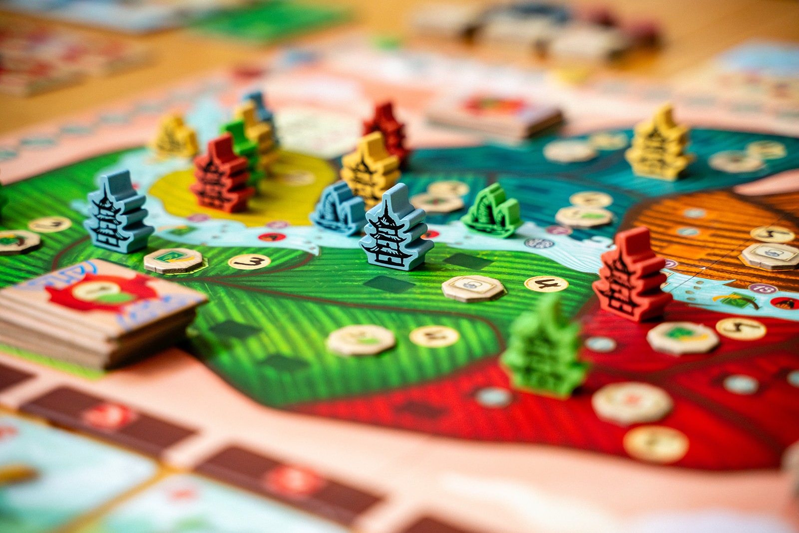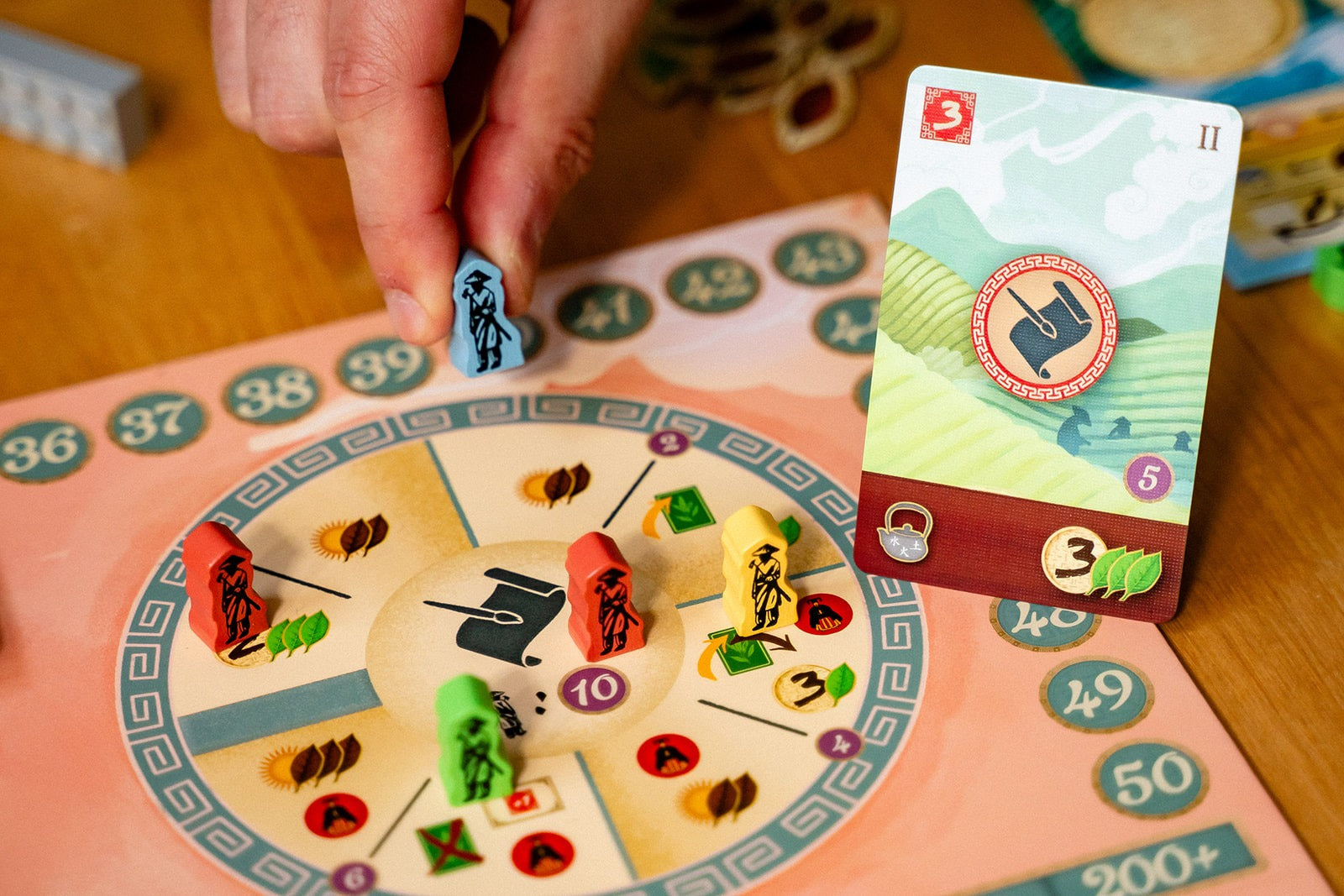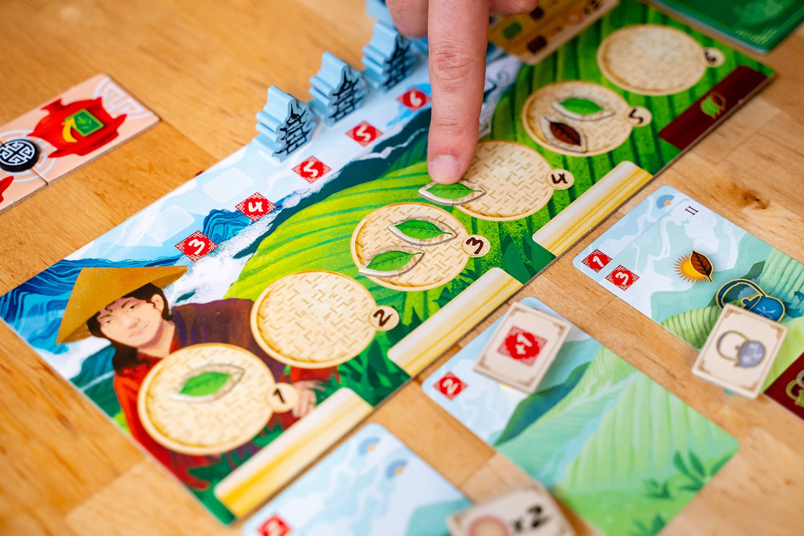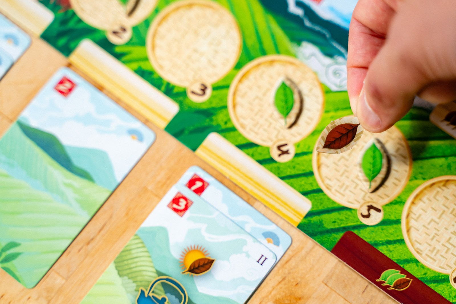 With your cards, you will build new tea gardens, acquire new cards, trade your tea with eager caravans, ferment your tea leaves, and harvest more tea. Couple your main actions with the power of secondary actions to navigate the river, produce tea cups, or practice tea studies at the university.